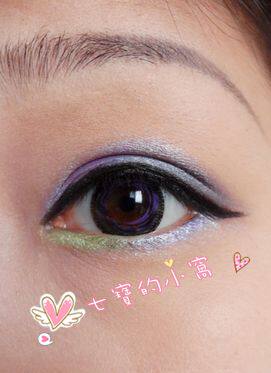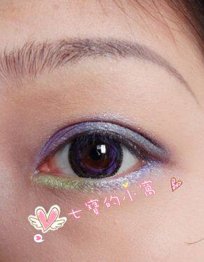 下眼影用绿色涂在眼头,紫色涂在眼尾,这个夏天就要“色”起来