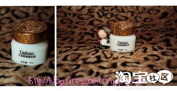 逛超市的时候意外发现的,看到大宝出了很多时尚包装的新东西,售货员极力建议小孟小姐购买大宝几十块的新眼霜,但是小孟小姐很坚持自我地拿了这个十块钱的大宝眼角皱纹蜜,在售货员鄙夷的眼神中扬长而去。。。。。其实买东西这回事情,都是为了自己,当然要顺着自己的心意。有点绕远了。回到这个眼霜上来,小孟小姐本来觉着它有点油,虽然味道很复古,很小时候,但是一直没怎么用它,后来拍《水浒》(抱歉写成《三国》了,现在改过来了,是《水浒》,可能最近看电视太多,一顺手就。。。哈哈)的时候,有在野外的戏份,也要赶天光,很早就化妆,有时候睡不饱,再扑完粉,一笑眼角就会出现干纹,那个时候就是大宝眼角皱纹蜜救了我的。建议还是早上使用,晚上使用的话,实在很担心过于滋润会长脂肪粒。