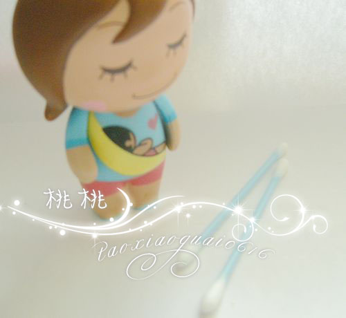 然后用棉签把沾在上眼睑上的睫毛膏的痕迹擦下来