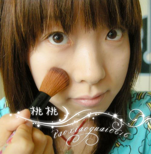 用眼影棒沾取4号色 超级嫩嫩的粉色