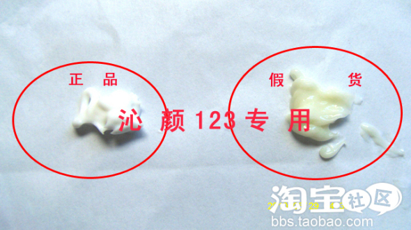 吼吼,再来就是最重要的内容物了,那真假的区别就是太大了。正品的膏体是纯正的白色,而假货的膏体是乳白色的。