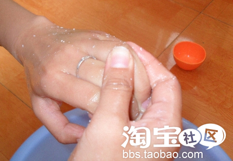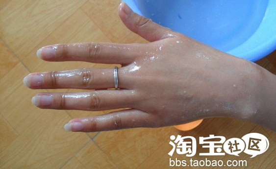 敷个二十分钟左右,让手部每一个细胞充分的吸收一下,看看,手开始变得有透感了,嘎嘎~~