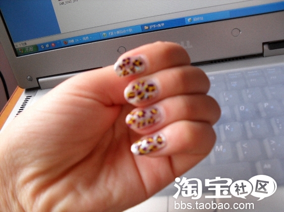 处女秀,哈哈,跟某位美女学的,今天小试牛刀,效果我还满意哈哈,先看下成品图,这张照的朦胧,比较有豹纹的感觉,近看还是差那么一点点哈,第一次嘛,以后熟练就进步啦。