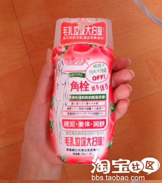 bling~bling~这个可爱的大家伙是用来祛除角质的,去死皮。这个可以用来全身去角质,草莓味的,甜甜的说,现在已经被我用了大半了。