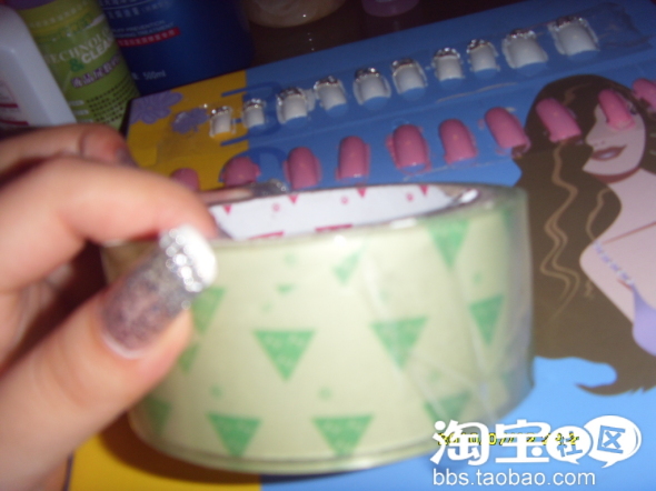 一.同上一样,把修好的甲片固定好在透明胶上。