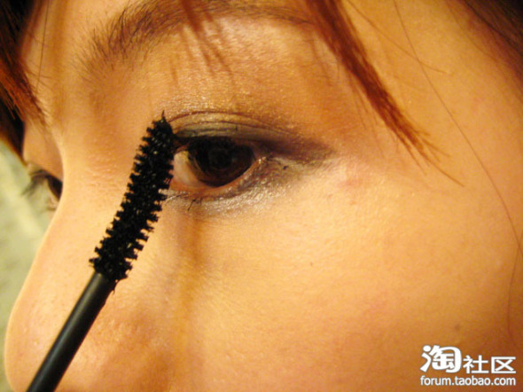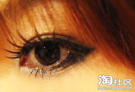 最后沾上假睫毛然后我是用手指和涂过的睫毛膏轻轻按一下
