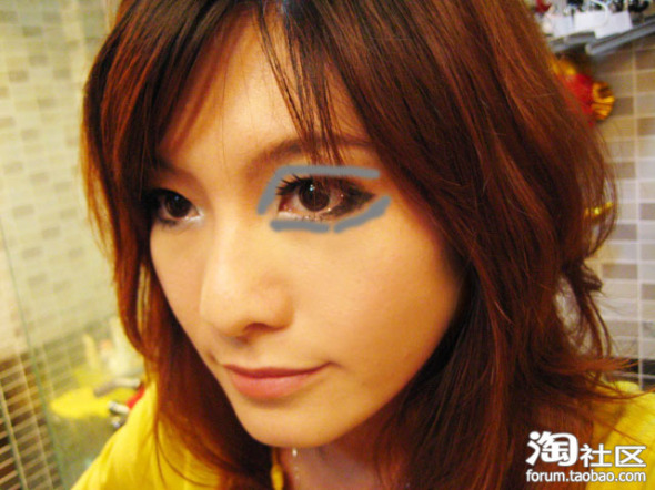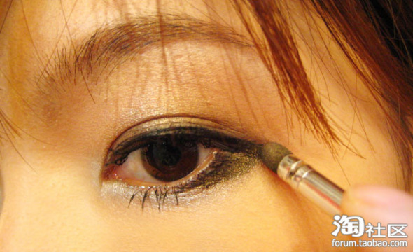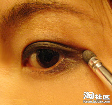 最后用最初的眼影粉来轻轻晕染边缘别用力擦