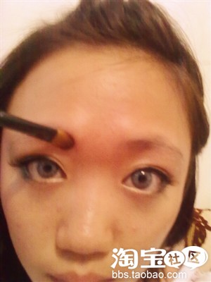 如果觉得很浓的话,就用金色系的眼影在下眼线那里擦。顺被在眼角那里话点黑色眼线