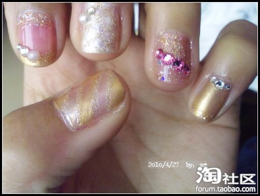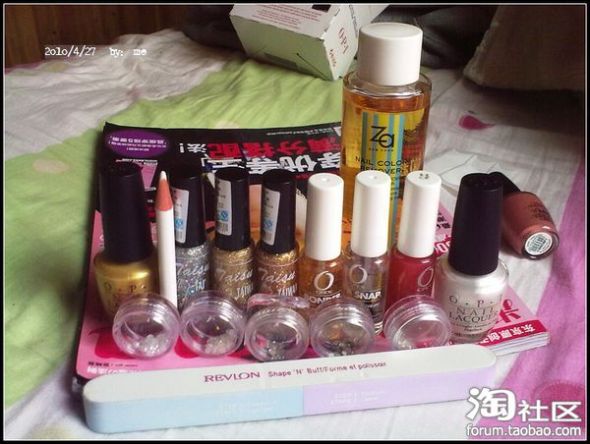俺最近在淘宝买了一些美甲产品,第一次的小作品,忍不住想上来跟大家分享一下
