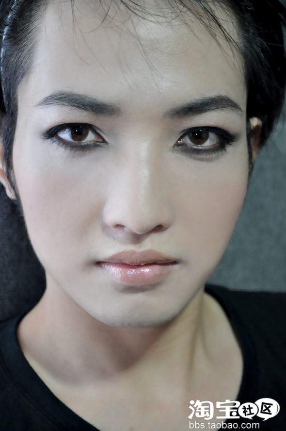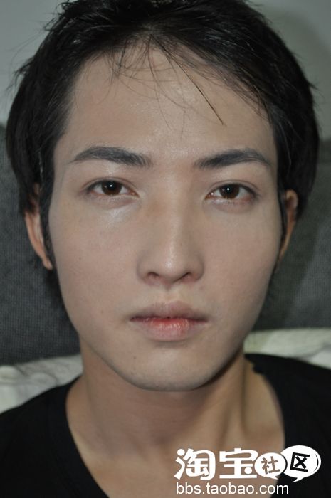 直播插队,刷新好麻烦啊楼主本人就是个帅哥,五官长得非常好,脸型很立体,画出来比美女还美女。真是太厉害了。呵呵。其实大哥你做个眼线男也是不错的。。最后散粉定妆。大功告成,还是有点奇怪。