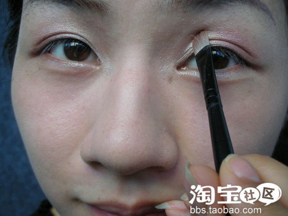 额,很少用画眉的DD,因为我懒,所以已经把眉给绣了,哈哈.不过眉头比较黑.还是画一点咖啡的吧..