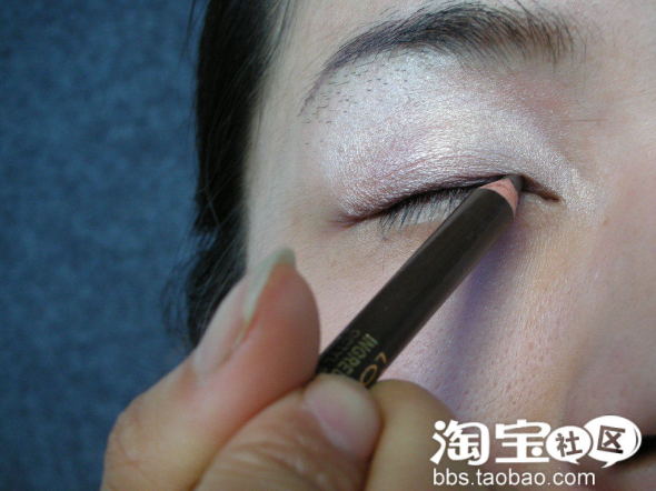 咖啡色眼线笔画眼线, 没有黑色的那么明显.呵呵.. 我喜欢淡淡的...