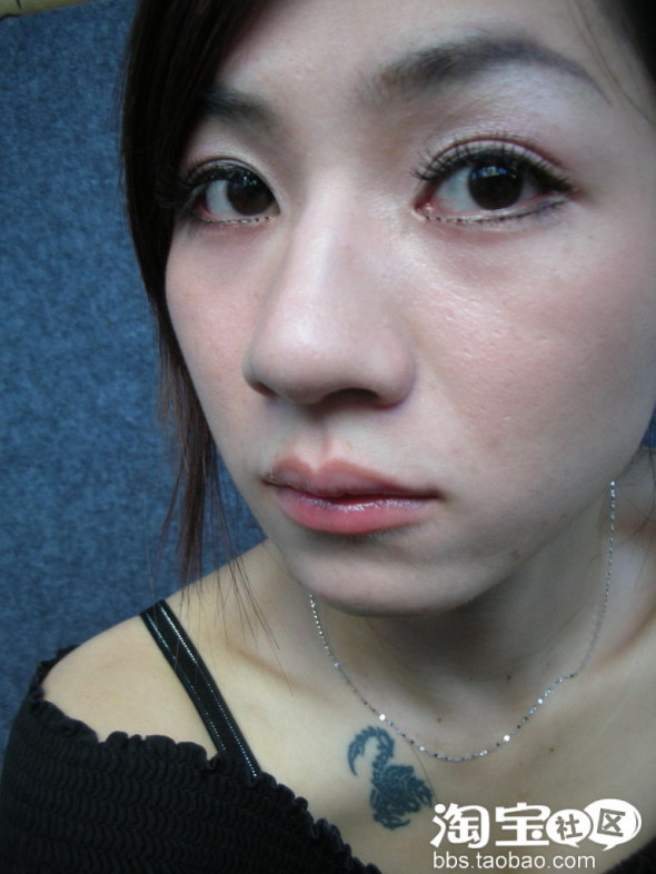 贴假睫毛是最最重要的了,你看,贴了跟没贴是不是差好多啊。