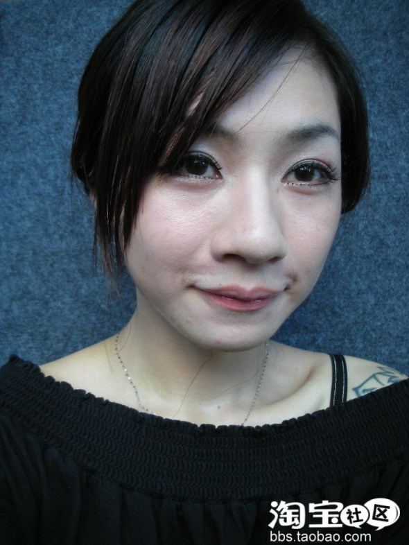 哈哈、下面SHOW下我的成果。虽然不是很好,但是还是比素颜漂亮多了。.