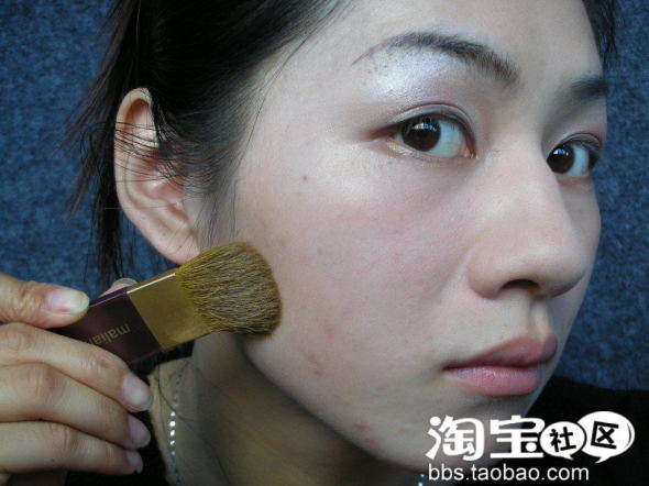 用修容粉C号色刷脸颊,注意蘸粉的时候要轻点,我就蘸太多,之前弄到我脸都黑了,呵呵。