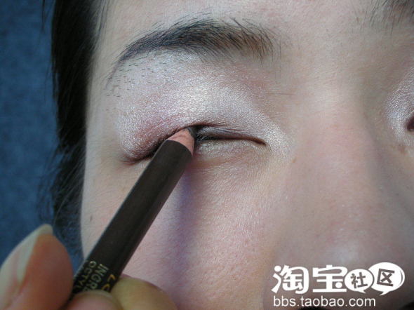 上眼线和下眼线刷点C色的修容粉,咖啡色的,其实最好可以刷带珠光的咖啡色、