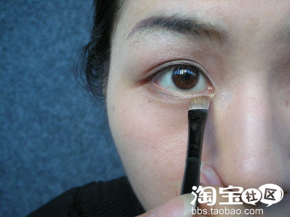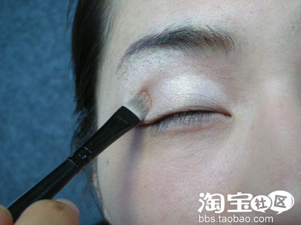 用浅金色眼影刷靠眼头和开眼角的部分。