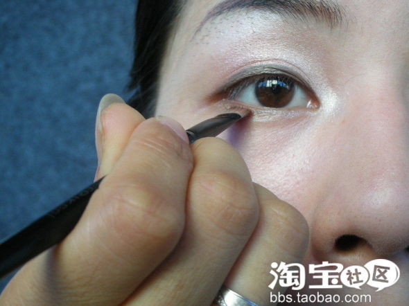 下眼线只化后半段,还是用咖啡色的眼线笔,我画的稍微轻一点。