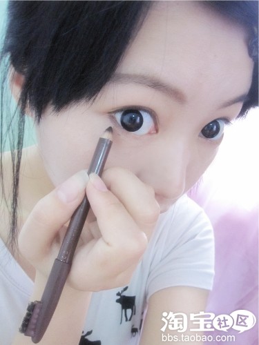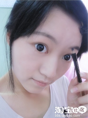 接下来是眉毛,现有眉笔把眉形轻轻的画出来