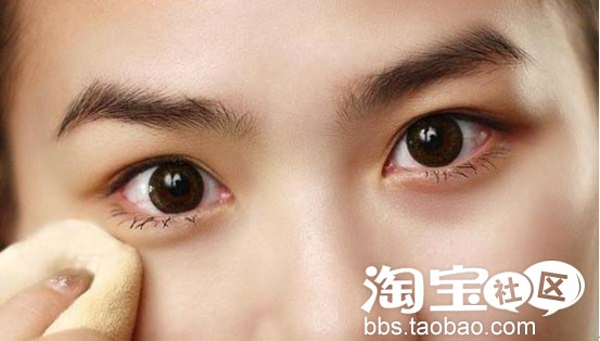 2. 其次,在脸部均匀的用BB霜打底,内眼角的位置可适当多一点点,然后用定妆粉薄薄的铺上一层固定妆容(为了防止眼线晕开变成熊猫眼,一定要压厚实了哦)