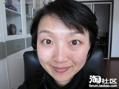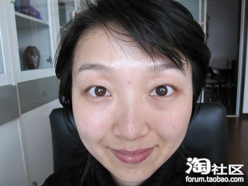 因为拍照之前出门一趟,抹了点防晒霜,所以回来后额头有一点点小“亮”~不过这个防晒霜没什么润色效果~更不遮瑕~