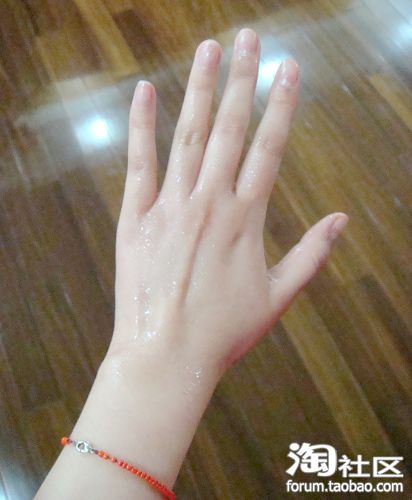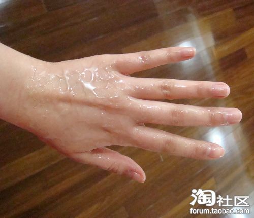 第二步:把之前调好的甘油均匀的涂在手上,涂多多的最好。