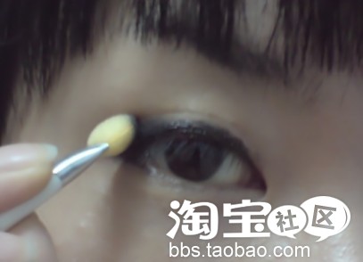 上完了蜜粉后就是最重要的眼妆部分了,由于西西天生眉毛很浓,不需要画,所以就省略了画眉的步骤了。