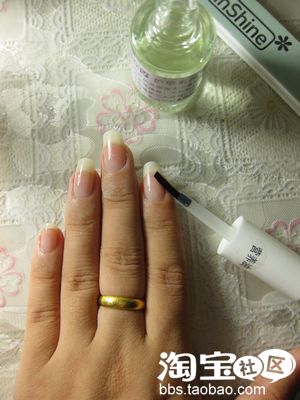 再来涂上营养油。每个指甲点上一点就可以了。然后用手轻轻按摩指甲