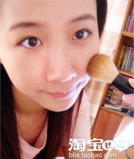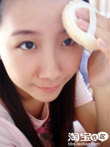 把散粉轻轻拍在皮肤上~可以在爱出油的部位多拍一些!轻轻地盖过刚才的腮红~这样就会像从皮肤透出来一样自然了!