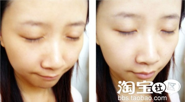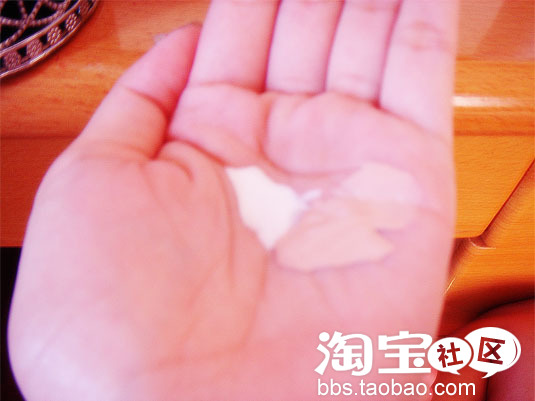 挤一点点比刚才白一号色的粉底~均匀地按压在T区~脸颊~下巴等位置!起到提亮的作用。(也可以按一点在黑眼圈的位置)