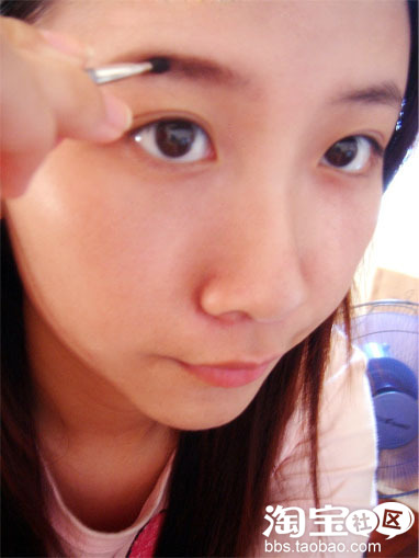 然后用眉粉扫沾取深色的这一边~把眉毛填饱满!