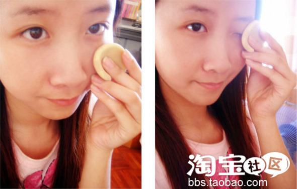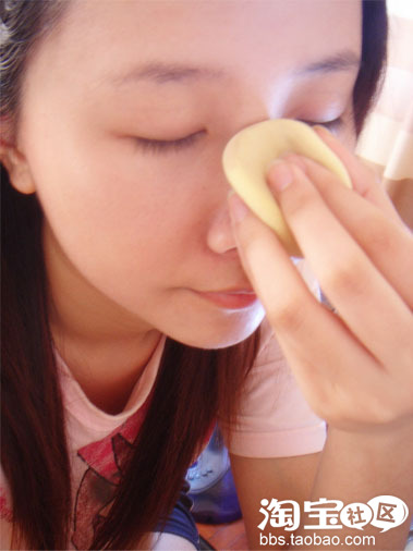 用粉扑把它按在脸上~~别忘了眼帘也要哦