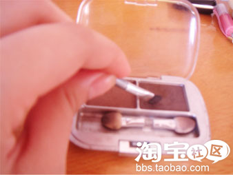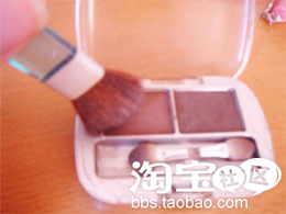 接着是我的万用眉粉~~用扫子沾一点颜色较浅的这一边(最好先在手上拍掉多余的粉)然后以眉头为起点轻轻地由上往下扫,要少量多次!