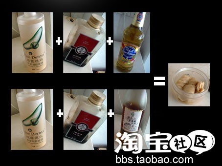 芦荟原液70%+玫瑰纯露30%(可依个人状况更换其他纯露)+啤酒少许