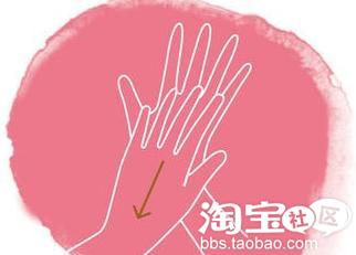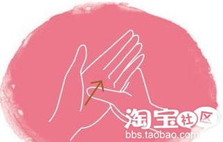 用大拇指由下往上按压自己的手掌心,直至掌心微微发热。