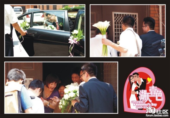 好多新娘出门前都会哭鼻子,我没有哦!妈妈那天忙的一塌糊涂,没找着她哭呢!