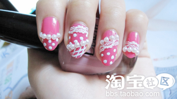 现在很流行美甲,斜斜的图案很漂亮,比较喜欢我喜欢那个有蝴蝶结的..漂亮