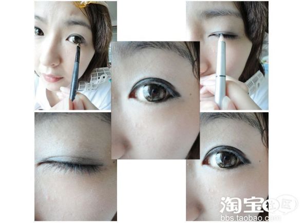 然后就是画眼线了喔!下眼线只要画后半部分就好了噢,记住,不要太翘喔!