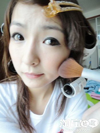 刚上完粉底,白白的有点小恐怖!