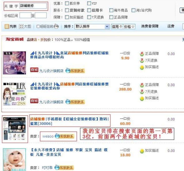 而最关键的是到了下周的这一天上午9点前的几分钟内,买家在淘宝首页搜索店铺装修的时候就可以看到你的宝贝在前几页了。依此类推,下一个宝贝自动上架时间为明天上午9:6分,再下一个自动上架时间为9:12,哈,坚持下去,一周以后买家想不看到你的宝贝都难了哈。