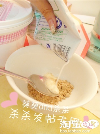 我们要准备中药面膜粉哦~~牛奶还有小碗~~~
