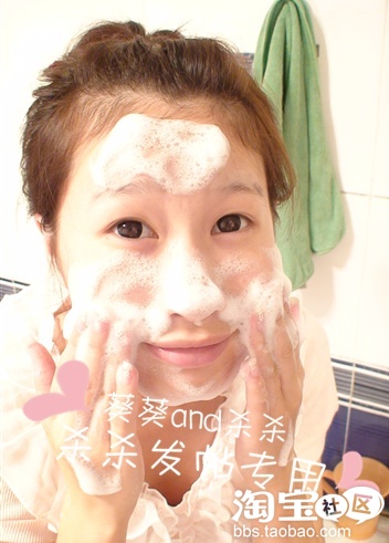 起了好多泡泡以后~~大家要好好按摩脸部呢 ~~~杀杀一到这个时候就很陶醉啊~~