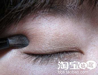 然后在眼窝刷上金棕色的眼影