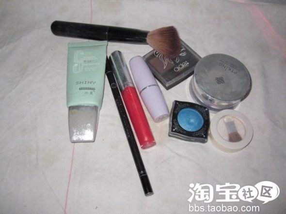 还有就是眉毛,因为偶的是人工绣了一下,所以就没有在这个上面败上一笔啦。(为这个老公还曾说过,怎么没有买制作假眉毛的工具呢,哦,他看了看我说,哦原来眉毛都定行了,这一笔败的彻底。)