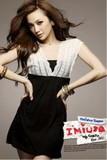 925#V领2色相拼连衣裙(不配腰带) 白色