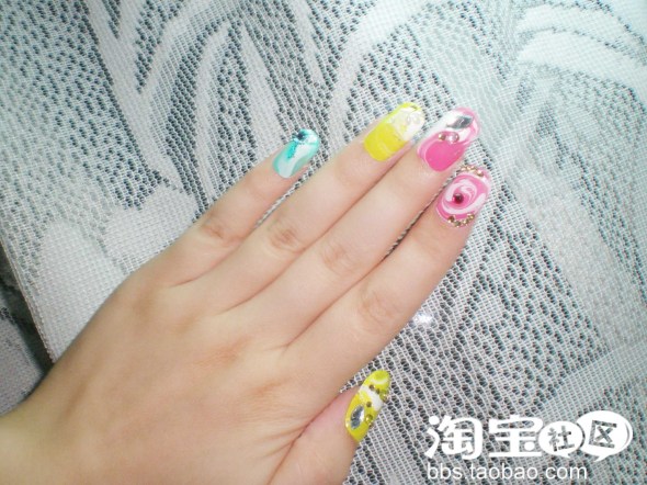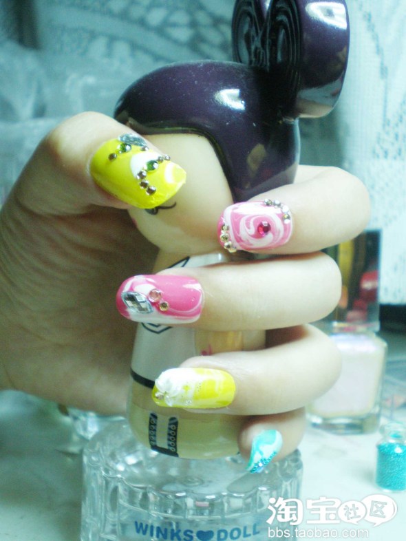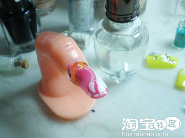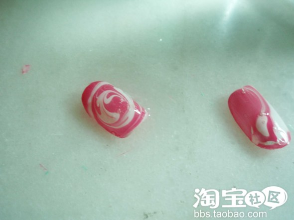 曾经看过在水中调出大理石花纹的美甲方法,也有淘友建议做个这样的美甲,