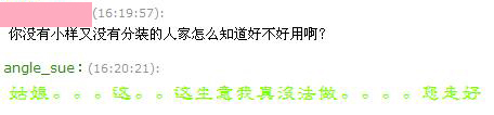 这位MM感觉就是不懂装懂。。。生怕被坑了自以为很聪明。。其实坑了她的她以为是好人。。俺这种老老实实做生意的却以为是在坑她。。实在是汗颜