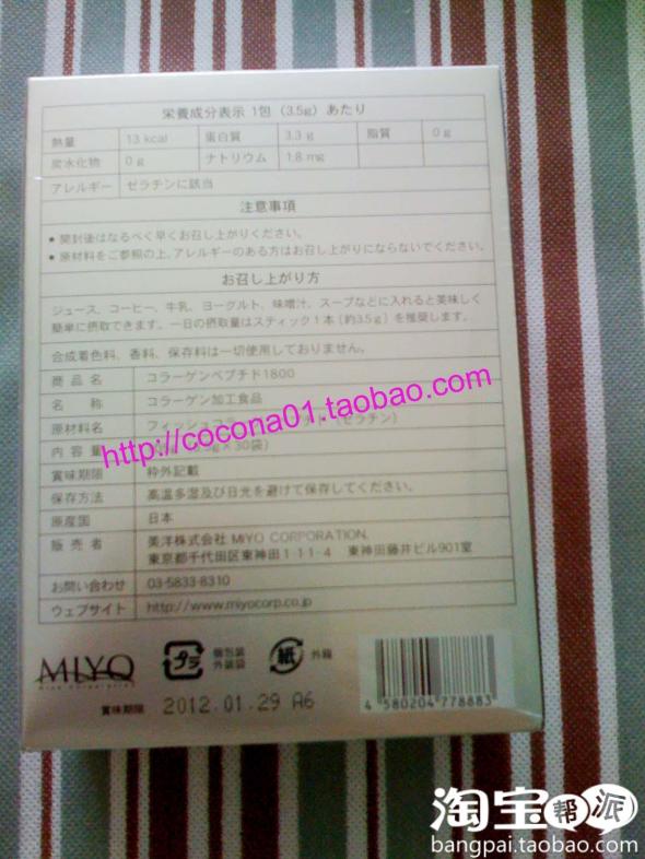 MIYO译成美洋,英文名称叫Fish Collagen,提取自生鲜鱼鳞,不含脂肪;