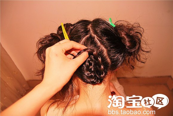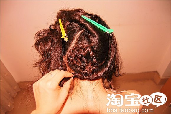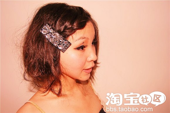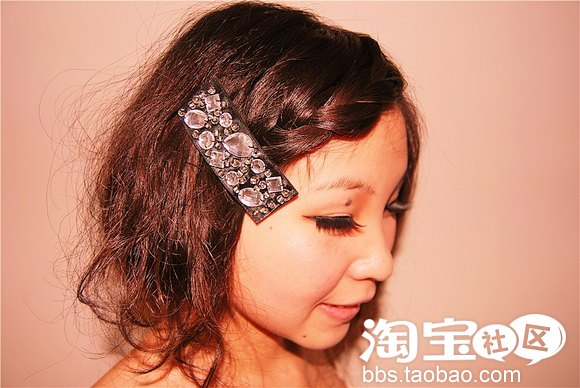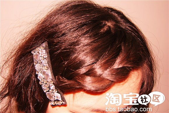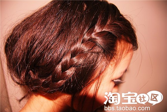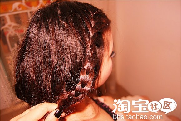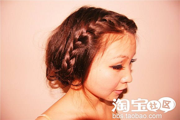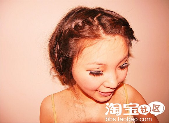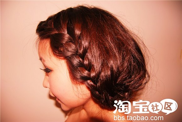接下来稍微一个小动作,风格就不一样了哦,脸型较好的MM可以将刘海做蜈蚣辫编,