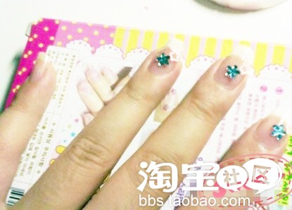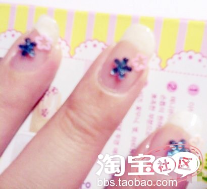 来点装饰 6.装饰 如果只是上班,这样子就足够了。如果是周末出去玩,可以在法式美甲的基础上做一下锦上添花的事情。比如说:加一些小钻石或者小花的装饰。 贴上亮片后更美 这里,我采用了粉色的镂空小花还有蓝色的立体水晶小花装饰,大家可以根据自己的喜好...